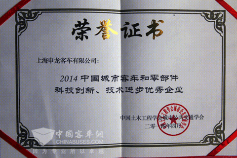 于此同时,学会资深专家上海巴士公交(集团)有限公司副总经理陈麟宣读《关于发布"2014中国城市客车和零部件科技创新技术进步优秀企业"名单的通知》名单,并颁发了奖牌与荣誉证书。上海申龙客车本次也有幸荣获了该项殊荣。与会专家学者还就如何推动城市公共交通优先发展进行了交流研讨。