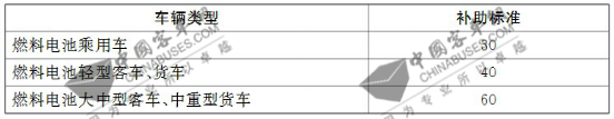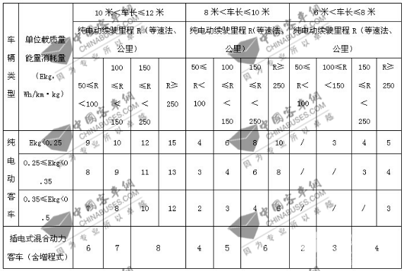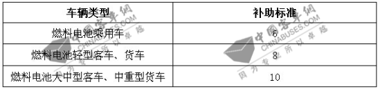 补贴的车辆类型包括纯电动公交车、插电式混合动力(含增程式)公交车、燃料电池公交车、超级电容公交车、非插电式混合动力公交等。其中,纯电动公交车和插 电式混合动力(含增程式)公交车根据车体长度划分三个不同的补贴级别。纯电动公交车每辆每年补贴4-8万元,插电式混合动力公交每辆每年补贴2-4万元。 燃料电池公交车每辆每年补助6万元,超级电容公交和非插电式混合动力公交车每辆每年补贴2万元。如下表所示。