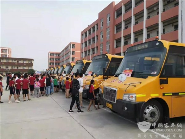 启动仪式结束,各班学生按秩序乘车,校车整整齐齐的驶出校门,驶向学子之家,驶向佳节的归属,驶向父母的温暖。舒适的座椅,环保清新的内饰,从不曾让人感受到归家的艰辛;视野宽阔的侧窗,让沿途的风景尽收眼底;金刚封闭环的车身结构,给学子带来最舒适的乘坐体验。