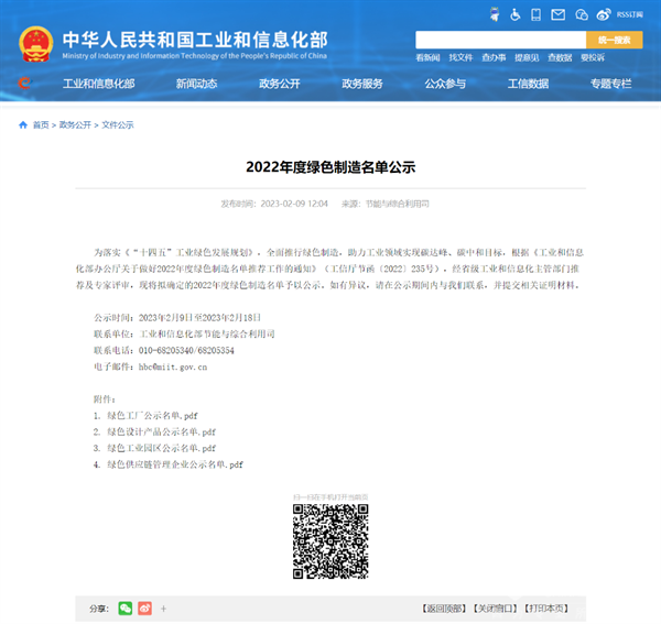国家工信部官网公布2022年度绿色制造名单
