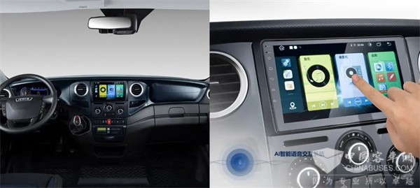 依维柯欧胜还搭载9英寸全彩高清触控屏,支持手机互联、定位导航、影音娱乐等功能,能够为用户营造智能、有趣的驾车体验,升级BICOLOR时尚仪表台,时刻掌握车辆状态。