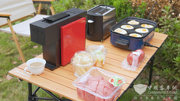 草地、阳光、沙滩……春暖花开,是时候带着亲朋好友来一场说走就走的郊游了!目前,近郊自驾加户外露营已成为最in的休闲方式之一,能为露营电器供电的汽车V2L功能也越发受欢迎。而业内常见的3kW及以下V2L放电功率,不能支持多种大功率电器同时用电,难以满足用户多样化的露营场景。MIFA 9的V2L功能放电功率达到MPV领域最高的6.6kW,小到为电灯、手机、笔记本等电子设备充电,大到同时支持车载冰箱、搅拌机、电磁炉等大功率电器启用,在露营玩法上带来更多想象力。