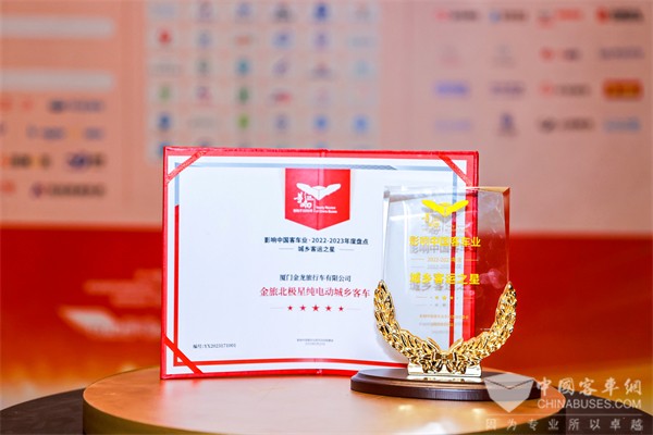 2023年2月22日,第17届影响客车业年度盘点活动南京盛启,公交企业领导、客车企业代表、行业专家齐聚一堂,共谋行业发展。活动同期,影响客车业年度盘点评选结果证实揭晓,凭借扎实的市场表现与用户口碑,金旅客车成功摘得2022-2023年度“高端商务客车之星”、“城乡客运之星”和“挪威之星”三项桂冠,实力领跑多项细分市场。