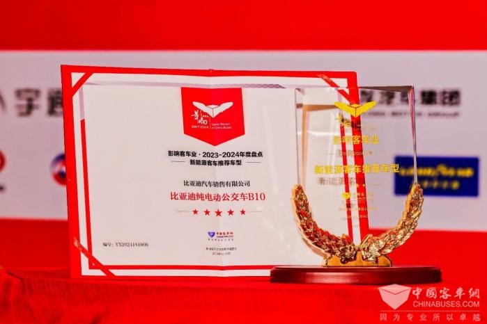 城市纯电动公交标杆车型 比亚迪B10获评“新能源客车推荐车型”
