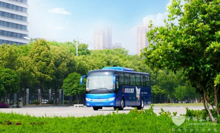 本次交付新国线来宾公司的11.3米安凯纯电动A6,涂装幽蓝、优雅大气,整车采用低风阻造型设计,兼具时尚与节能,与广西秀丽的诗画山水、浪漫的北部湾风光、多彩的民族文化相契合。