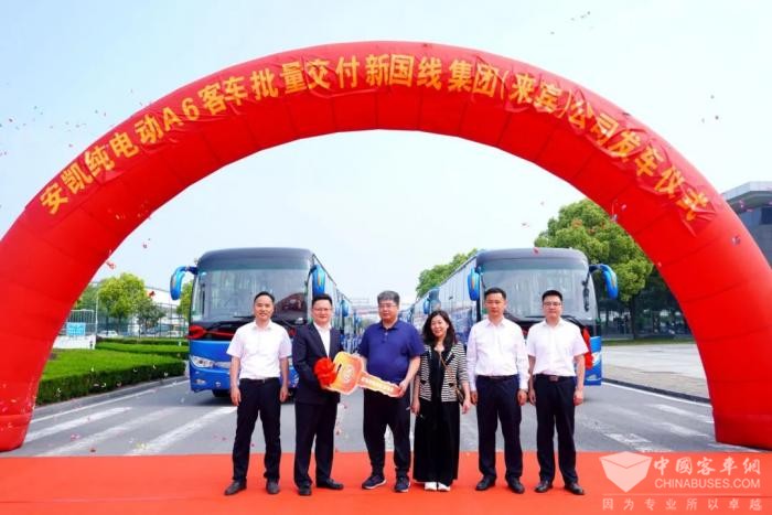 此刻,正值春夏之交的广西,山歌飞扬,百花绽放。4月23日,一批安凯纯电动A6再次交付新国线集团(来宾)有限公司(以下简称新国线来宾公司),助力当地全力打造游客想来就来的“诗和远方”。