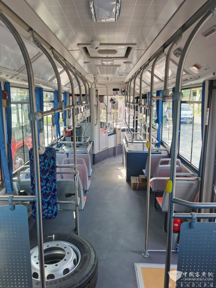 车内采用金属质感内饰,车内通道宽敞、乘客视野开阔、空间感好;整车内饰及粘接胶均采用环保工艺标准,安全、阻燃、无异味,车内空气清新宜人;车辆还可配置一级踏步、二级踏步多种地板样式,车内通道宽敞,乘客上下车方便流畅。同时,BJ6105采用成熟的永磁同步电机驱动,噪音小,动力强劲,出勤率高于98%,装配e-AIR智能循环系统,可有效降低车辆能耗,助力客户开源节流。