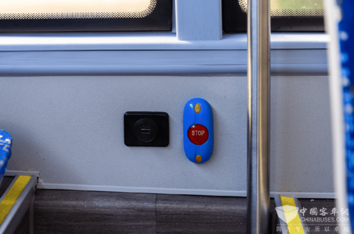 扶手位置上安装的下客门铃,高度为一米五,更适用于行动受限的乘客。