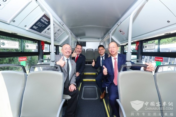 在发车仪式上,苏州金龙总经理黄书平指出,苏州金龙从2005年开始便布局智利市场,经过二十年不断深耕,累计已向当地销售客车超千辆。海格客车始终以“提升城市交通品质、改善市民出行体验”为目标,坚持提供高品质的产品和高标准的服务,因而在此次招标中成功胜出。此次发往智利的FENCER f1纯电公交,是海格客车集多年技术积淀与创新成果打造的精品,将为智利公众带来更舒适、便捷的乘车体验。他期待双方继续深化合作,共同推动智利新能源交通体系建设,并祝愿该批车辆顺利运营,成为中智友谊与合作的绿色桥梁。