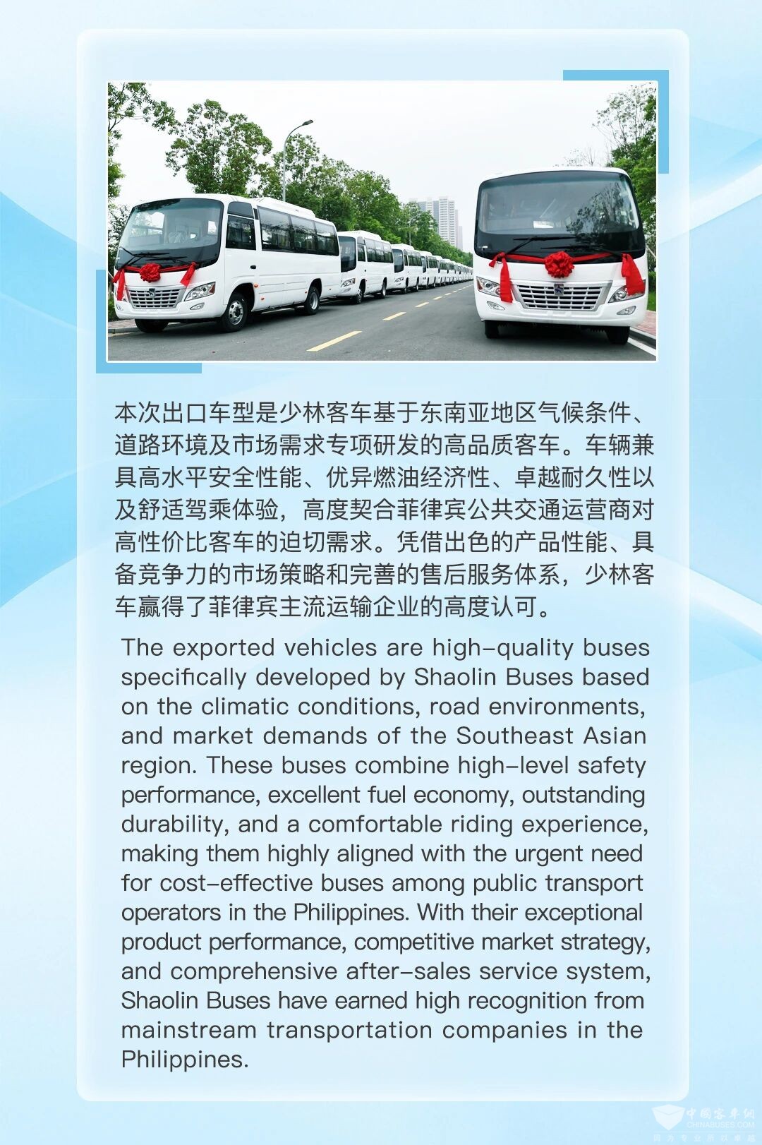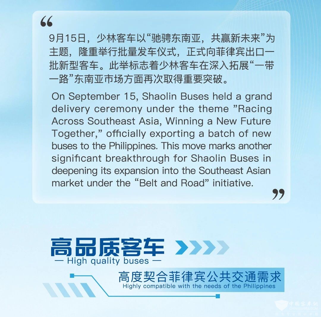 - 驰骋东南亚,共赢新未来 | 少林客车批量出口菲律宾[09-16]