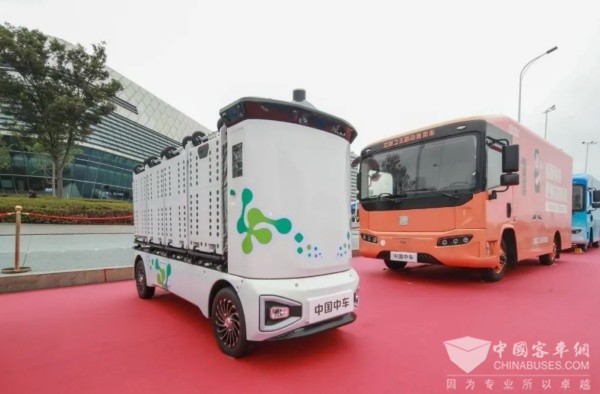 针对智能物流场景,中车电动带来了L4级自动驾驶智能配送车。“小个子”有“大能量”,能实现150km续航、500kg最大载重,基于北斗的组合惯导系统赋予其厘米级定位能力,配合自主决策规划技术,可在园区、社区等场景自主完成货物配送,为“无接触配送”提供可靠解决方案。