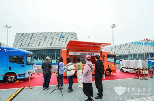 展台“最靓的仔”,当属中车电动北斗应急指挥车。这款车属于中车低地板多功能车产品延展,不仅拥有410km长续航、19m³超大货厢和电动欧翼门,更搭载了中车电动自研的智慧系统平台,融合北斗定位技术后,可实现整车数字化管控与精准定位。其灵活的场景适配能力,也让它成为新零售、社区服务、文旅宣传等领域的“新宠”,目前已在成都、重庆、长沙、广州等二十余个城市销售与使用。