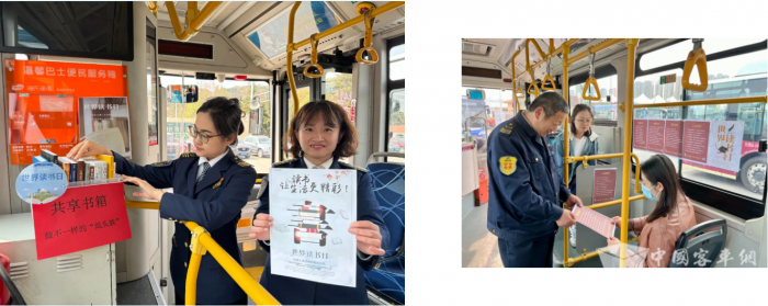 4月23日是“世界读书日”,城运控股交运温馨巴士公司通过在车厢内设置“读书箱”“荐书角”等方式,吸引更多市民与书为伴,参与阅读、享受阅读,为“书香青岛”营造浓厚的社会氛围。