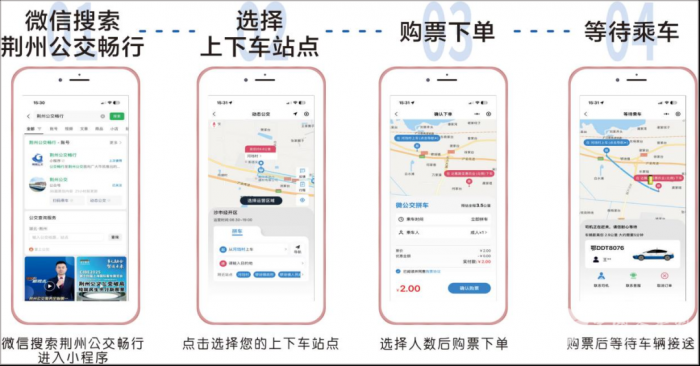 乘客只需在“荆州公交畅行”微信小程序上选择上下车站点,并购票支付后,系统后台通过智能算法快速匹配车辆,让乘客即刻享受“点到点直达”的公交出行服务。