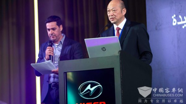 会上,苏州金龙总经理黄书平深情地回顾,阿尔及利亚是海格客车出海之初就建立深厚友谊的市场。2005年驶向阿尔及利亚的第一批海格客车,至今仍历历在目。携手同行二十载,海格客车已融入阿尔及利亚的每一寸土地中。一万台的销量是品质与服务的最佳印证,遥遥领先的行业第一的市场地位,更是市场认可的最好证明。他向出席活动的近 500 位合作伙伴表示感谢,正是这份信任,让中国智造在这片热土上驰骋不息。