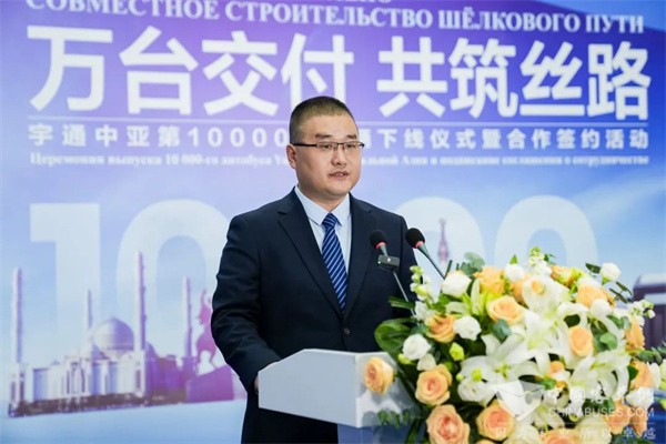 本次出口中亚第10000台车辆的成功下线,正是宇通积极参与“一带一路”建设的有力证明。活动现场,宇通客车中亚区总经理李海峰总结品牌深耕中亚成果。他表示,自共建“一带一路”倡议提出以来,中国与中亚国家的合作不断深化。多年来,宇通与中亚地区客户的合作,不仅带来了高品质的公共交通产品,更重要的是带来了理念、技术、标准的融合与共建。接下来,宇通将以本次“万台交付”为契机,继续发挥技术引领与系统集成优势,助力中亚国家实现更高水平的城市交通现代化。