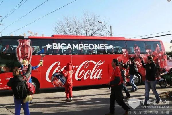 图 | 智利国家队捧得美洲杯冠军后乘坐宇通客车凯旋