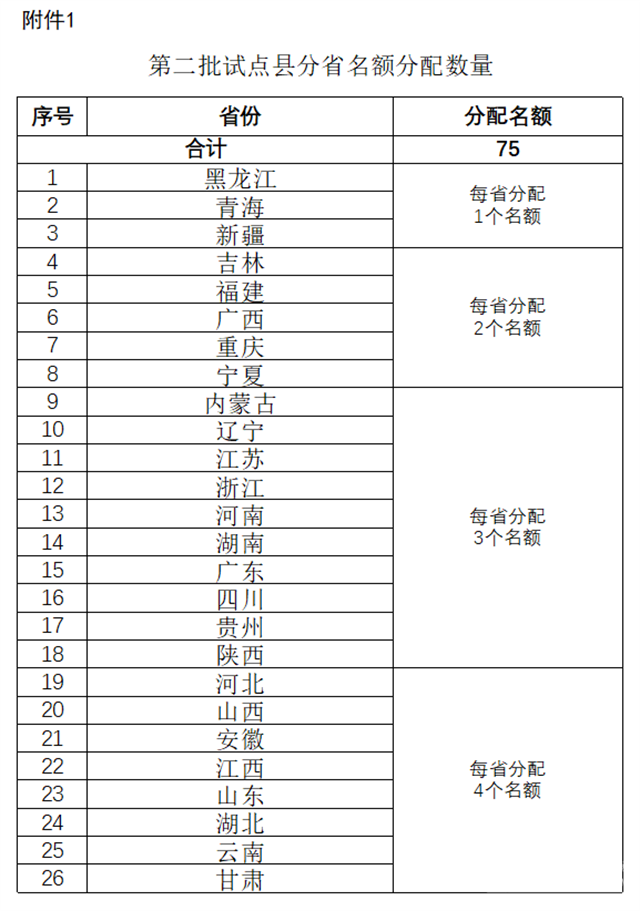 附件:1. 第二批试点县分省名额分配数量