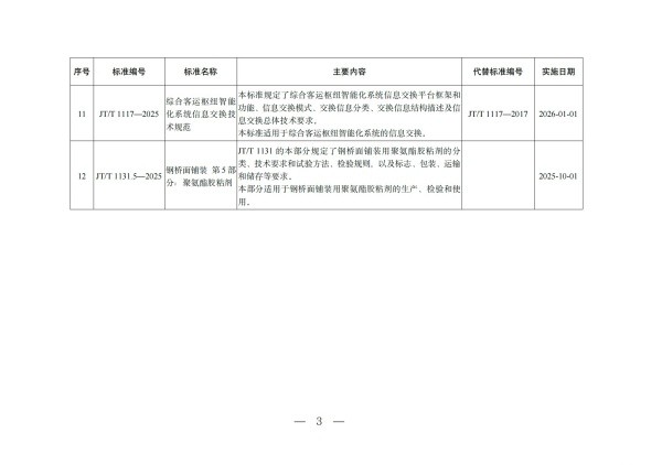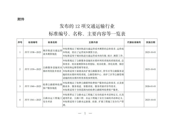附件:发布的12项交通运输行业标准编号、名称、主要内容等一览表
