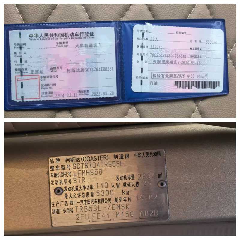 非营运23座丰田考斯特,2014年3月上牌,汽油3TR发动机,2.7排量,办公桌,秘书台,木地板,有天窗,5前进档,表显不到10万公里,感兴趣来电。 本公司接受客车置换(国三国四国五,非营运,旅游客运,公路客运,公交客运都可以)。我们有着丰富的外迁内地城市经验。也可做正规出口手续。我们在广东省珠三角区域(深圳、广州、珠海、佛山、东莞、惠州)从事二手车数十年,全部是薄利多销的价格出售,不管是单台还是批量•均享受最诚信的合作态度。也可以根据您需要的指定车型来优选匹配,柴油.油电混合、新能源纯电动均可在珠三角区域看到现车,各种品牌都有,油车,新能源电车,油电混合,天然气客车等,可安排师傅代驾送车,或者物流配送发往全国。我们的宗旨:不但销售的车型丰富多元化,服务更是全方位:可视频看车定车,可代驾送车。另外本公司常年收购2座-55座客车,中巴、大巴都可以操作。 公司地址:1、深圳市南山区西丽街道曙光社区云家供应链有限公司宿舍101车友汇鑫汽车贸易有限公司 2、深圳罗湖区宝岗路1号淘车吧