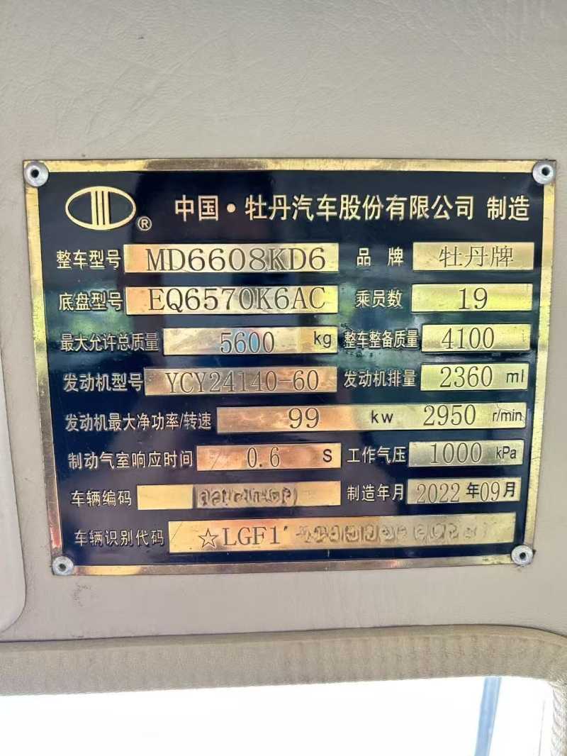| 客车品牌 | 牡丹客车 | 上牌时间 | 2022-10-19 |