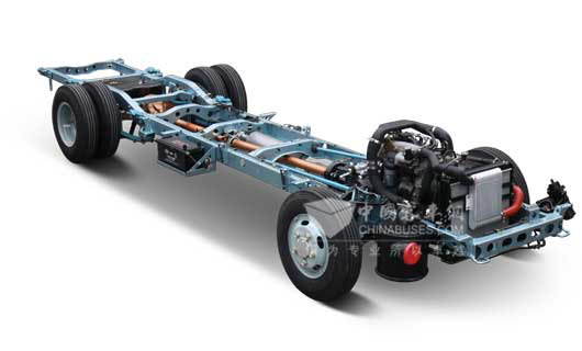 宝斯通底盘采用双横臂式前独立悬挂和弯纵梁、封闭式断面结构的车架。双横臂式前独立悬架、后少片簧式悬架能够有效降低来自路面的震动,使客车的操控稳定性和乘坐舒适性大大提高;前后悬挂的支撑部位采用O型封闭式断面结构车架,在缩小大梁截面、降低底盘自重的同时,提高了车架强度,还可防止扭曲变形;一次性冲压成型的弯纵梁车架可大大降低车身离地间隙,不仅有利于提高车辆的行驶稳定性,还降低了车内地板的高度。同时,宝斯通底盘配备了前盘后鼓式制动器、ABS+EBD、刹车自动间隙调整臂,提高了整车制动安全性。