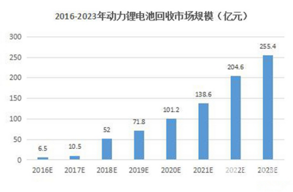 而业内也预计,从废旧动力锂电池中回收钴、镍、锰、锂、铁和铝等金属所创造的回收市场规模在2018年将超过53亿元,2020年将超过100亿元,2023年废旧动力锂电池市场将达250亿元。大量从汽车上“退役”的电池,仍然可以广泛应用在低速电动车、储能、分布式光伏发电以及部分家庭用电等领域,具有很大的再利用价值。