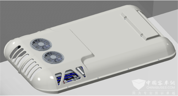 EMB-V模块化客车空调具有以下特点:免打胶密封,车顶采用翻边结构+密封压条的形式,实现不需要打胶密封;免上顶安装,空调底座设计有承重结构,可在车厢内部将其安装在骨架上;轻量化设计,采用新型材料碳纤维,实现轻量化设计;节能环保,运用直流变频和低噪音风机技术,产品能效高、噪音低;安全可靠,三级绝缘及防火设计,高压电气防反接功能。