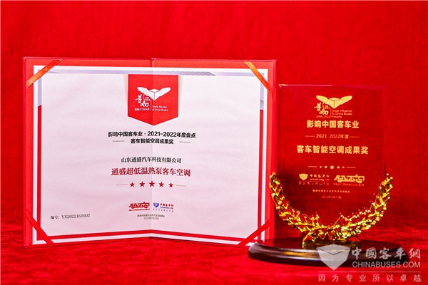 荣誉二:在第16届影响中国客车业活动中,通盛科技公司的“通盛超低温热泵客车空调”产品荣获“客车智能空调成果奖”!