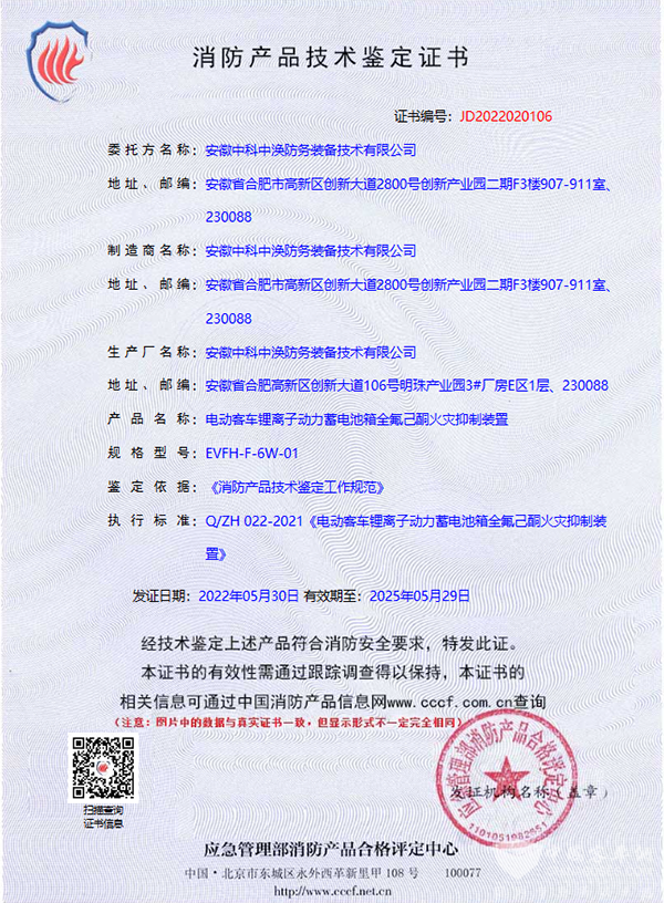 中科中涣参与 客车锂离子动力蓄电池箱火灾防控装置标准实施