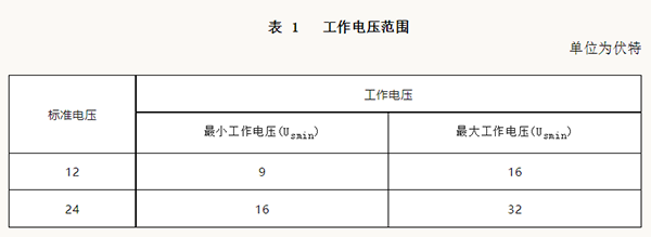 在表1所示供电电压范围内,按GB/T28046.2—2019 中4.2的规定进行直流供电电压试验,火灾 防控装置工作的功能状态应达到GB/T 28046.1—2011定义的A 级。