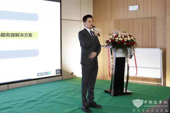 会议期间,欧科佳中国还为行业带来了全新的技术解决方案——完整、安全商用车电子电气架构及车辆数据中心的构建方案。欧科佳中国总线软件开发部部长朱雷、智能网联和数据安全部部长董岗及副总经理操小军分别从不同维度详细解读了这一全新技术解决方案。