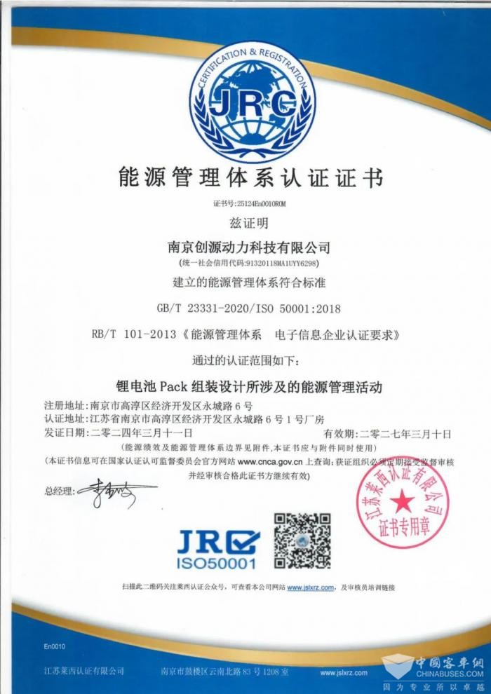 乐竞(中国)体育官方网站2024年3月27日获悉,开沃集团核心子公司南京创源动力科技有限公司成功通过能源管理体系认证,这标志着创源动力在节能环保方面又迈出了坚实的一步。这一认证的获得不仅证明了创源动力对能源管理的高效运作,更是对创源动力在能源利用、节能减排、资源优化等方面管理水平的认可。