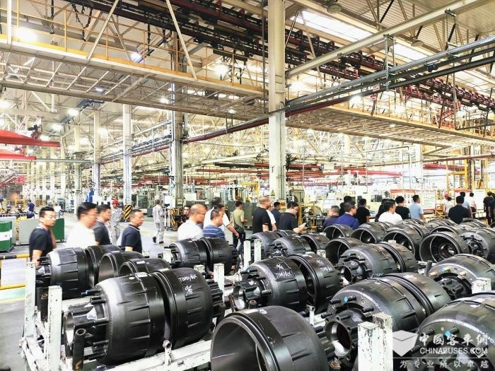 走进襄阳工厂,近四十条生产线繁忙有序,这里每30秒就有一台车桥下线,发往全国各地的主机厂,为乘客提供安全、舒适的出行体验。参访团一行听取了企业发展概况介绍,详细了解了襄阳工厂智能制造升级、国家级绿色工厂创建和新能源车桥产品研发情况。