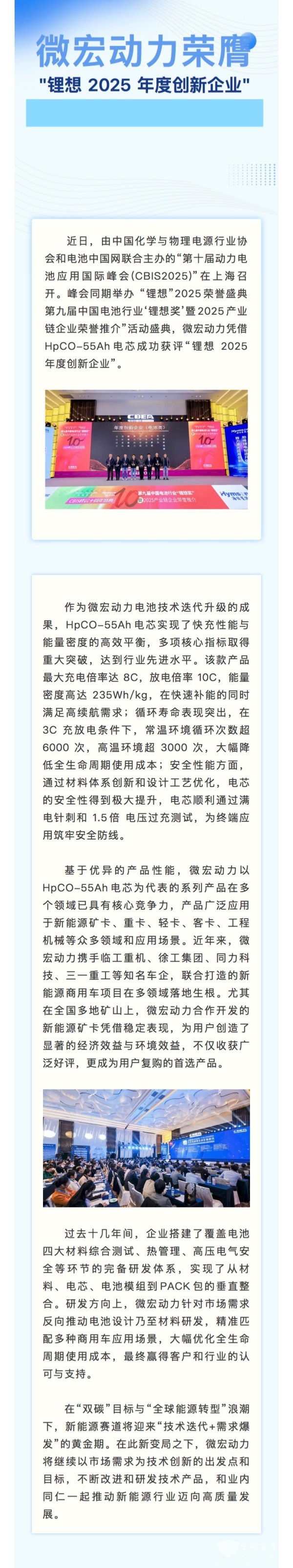 - 用技术打造品牌效应!微宏动力荣膺 “锂想 2025 年度创新企业”[11-20]