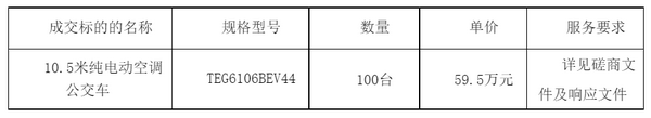 成交供应商名称:湖南中车时代电动汽车股份有限公司;