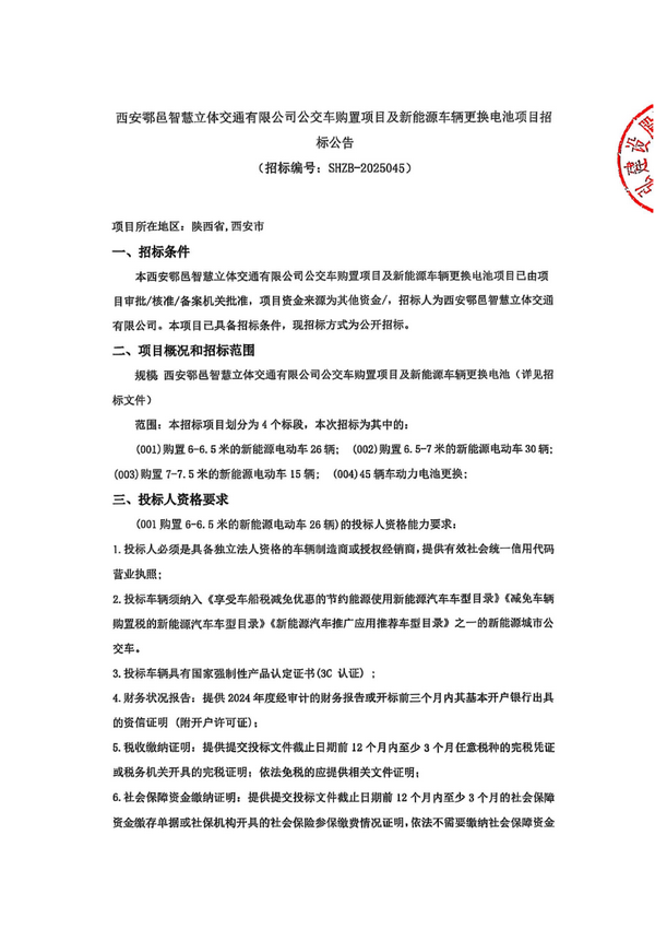 - 西安鄠邑智慧立体交通有限公司公交车购置项目