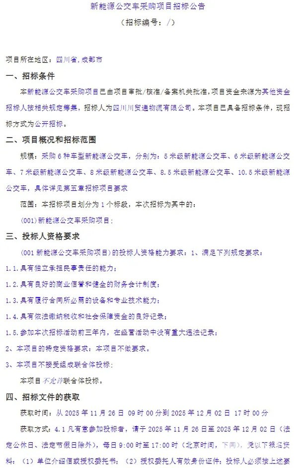 - 四川省成都市新能源公交车采购项目招标公告