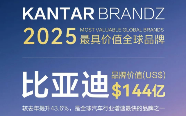 比亚迪连续三年蝉联凯度BrandZ最具价值全球汽车品牌榜TOP10!
