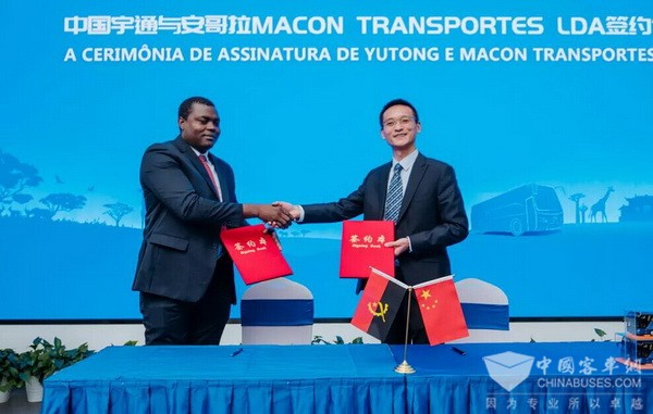 当天,宇通客车还与安哥拉MACON TRANSPORTES LDA举行了签约仪式,双方达成了55台客车订单的协议,其中45台ZK6122H9客车将成为安哥拉省际客运大巴,10台ZK6107HA客车将成为安哥拉政府及企业通勤租赁用车。